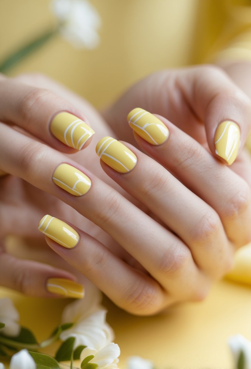 This nail design uses a soft pale yellow as the base color. It gives a fresh and light feeling perfect for spring.