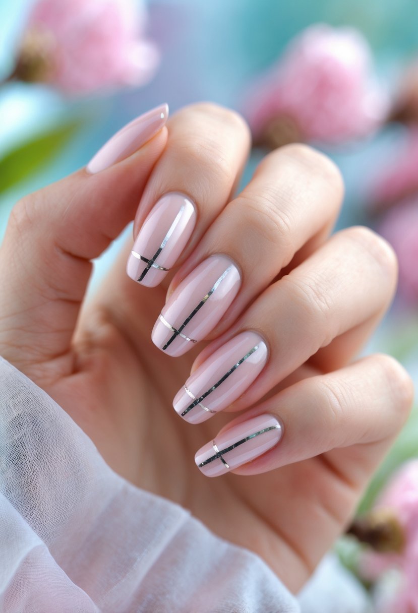 Thin silver stripes add a modern touch. They give the nails a subtle shine without being too flashy.