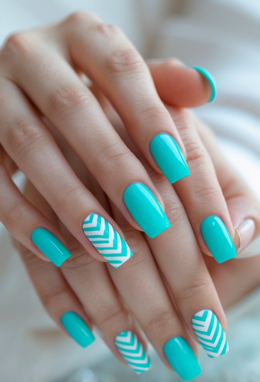 Thin white lines add a simple, elegant touch. The minimalist design keeps nails looking clean and neat.