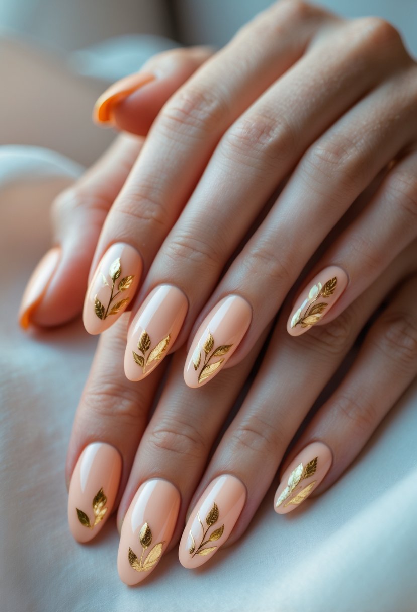 Coral nails with gold foil are popular in spring nail trends. They suit both casual and formal occasions well.
