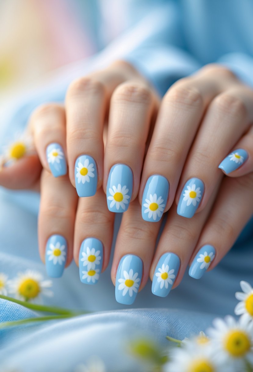 Daisy nail stamps add simple flower patterns. They make the design fresh and delicate.