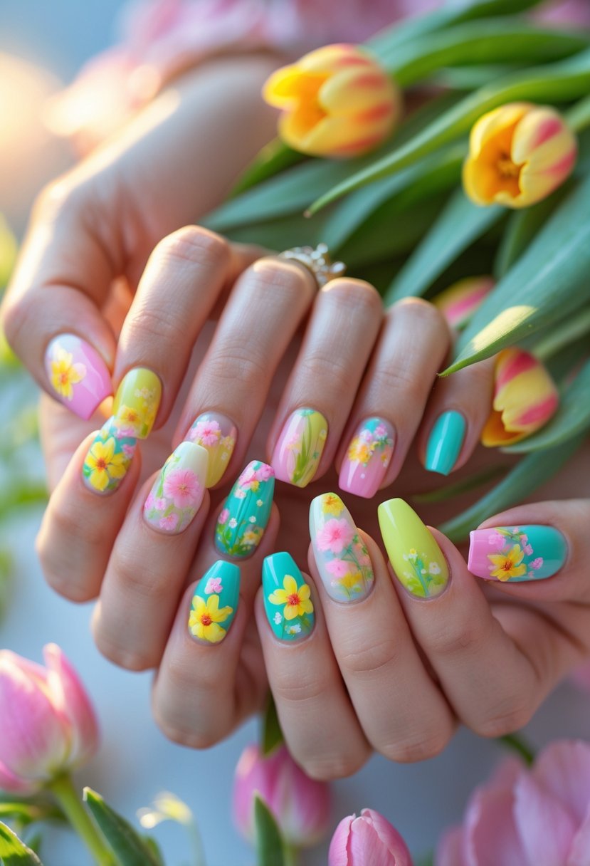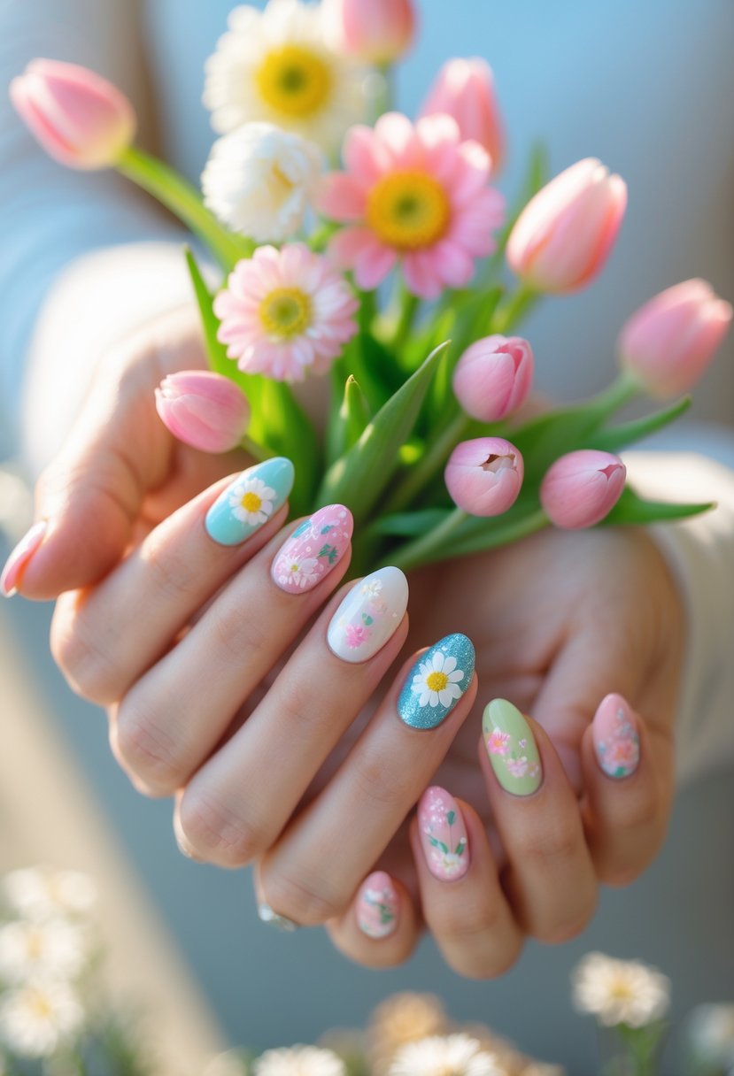 Oval and almond shapes work well with spring colors and patterns. They create a natural look that complements soft shades and floral details. Square nails also suit simple designs like French tips.